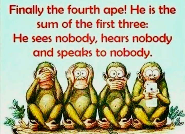 Guilty as others tweeting but here goes. * TECH is winning (won). * Peeps focus - screens, chatter and rebuttals, not family & friends. * Look everywhere and your gaze will not be returned. * If apps weren't used 24/7 society might reconstitute. * Look Talk * B Human * See Kidspic.twitter.com/c1jdi7Pcag