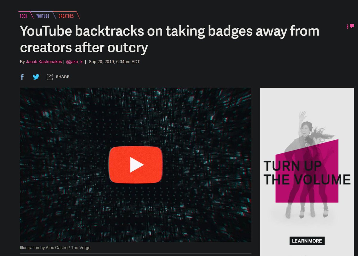 Youtube is amazing it keeps making changes people hate then has to backtrack. It's almost as if they are totally out of touch with what made the site great... That's "the people." Without them, youtube will go the road of cable TV given enough time.pic.twitter.com/LEB5uIQ9UW
