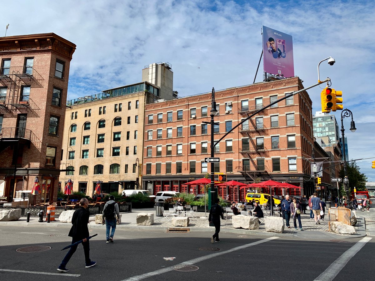 #MeatpackingDistrict#publicspace redesign is complete, and looks terrific! The NYC Streets Renaissance Campaign started here back in 2005 with a#placemaking demonstration process - now fully brought to fruition.@StreetsblogNYC coverage back then: https://nyc.streetsblog.org/2006/10/23/a-new-vision-for-the-meatpacking-district/ …pic.twitter.com/gBjvs8UAee
