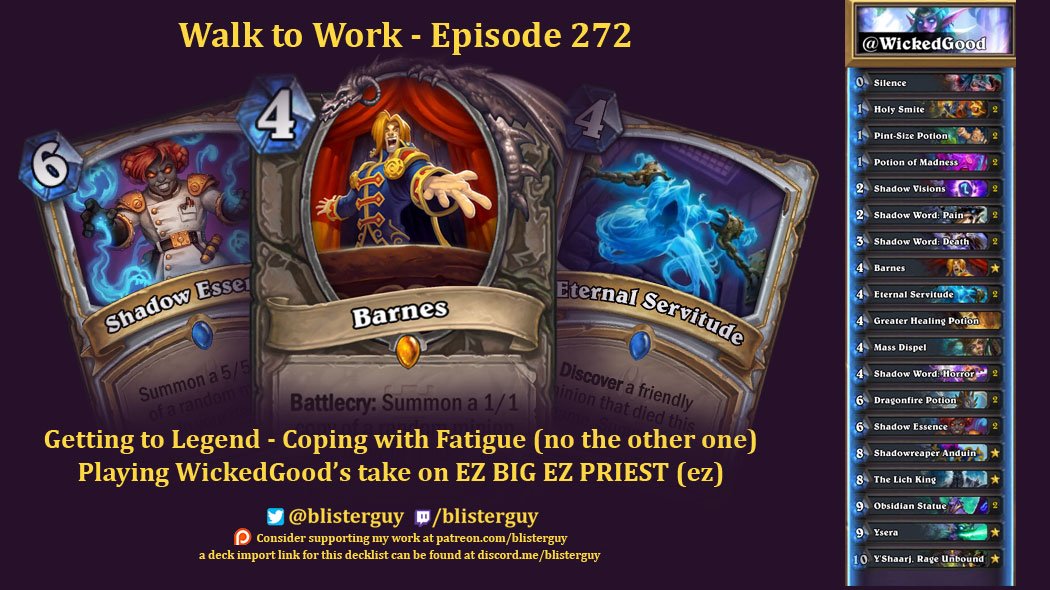 Ep 272 - Getting to Legend: Coping with Fatigue (no, the other one) and @WickedGood's take on EZ PRIEST http://hearthstonecommute.libsyn.com/  #Hearthstone pic.twitter.com/c2KWkROJBC