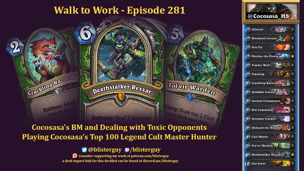 Ep 281 - Dealing with Toxic Opponents, playing @cocosasa_hs's Hunter deck, and the HCT BM incident