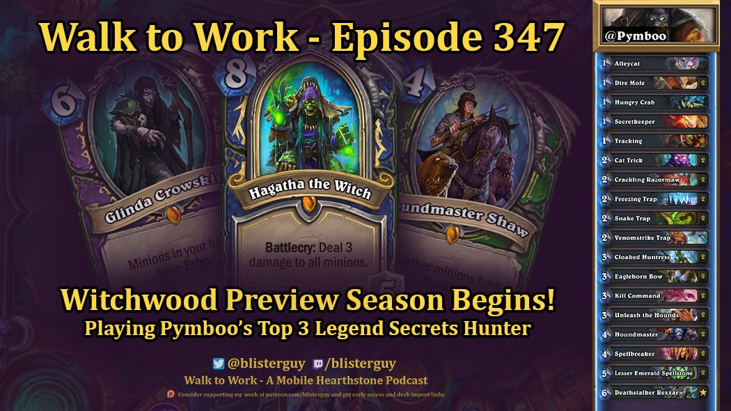 Episode 347 - #Witchwood Card Reveals are Here! And I play @pymboo's Rank 3 Legend Secrets Hunter on the ladder.