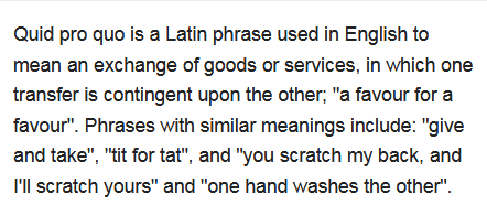 I like my quid pro quo shaken, not stirred.