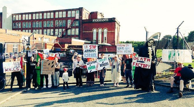 Campaigners protest at Waterhead Ferranti factory over its export of arms components to Israel.