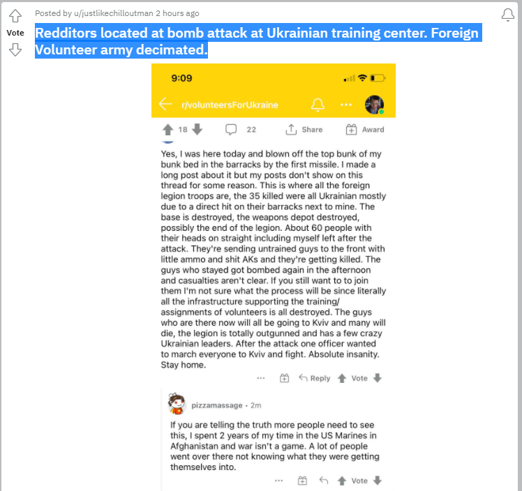 "Reddit Army" just got annihilated in Ukraine. How can a bunch of guys in their mom's basement walk into a warzone and expect to not die immediately?pic.twitter.com/CeMQPCTdmT