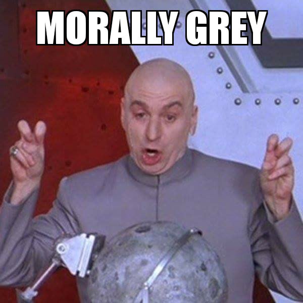 Does anyone think the reason its considered morally grey is because we dont know the whole story yet??? There could be something happening later on, that makes us go. Ohhhh ok, yeah morally grey....