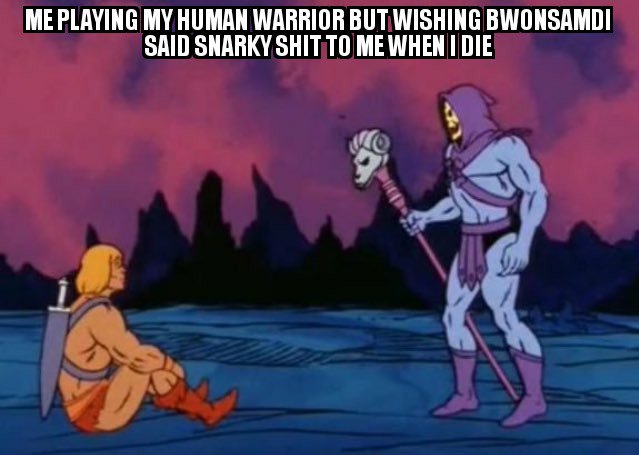 I absolutely love Bwonsamdi's snarky comments when I die; sometimes I die just to hear them lol