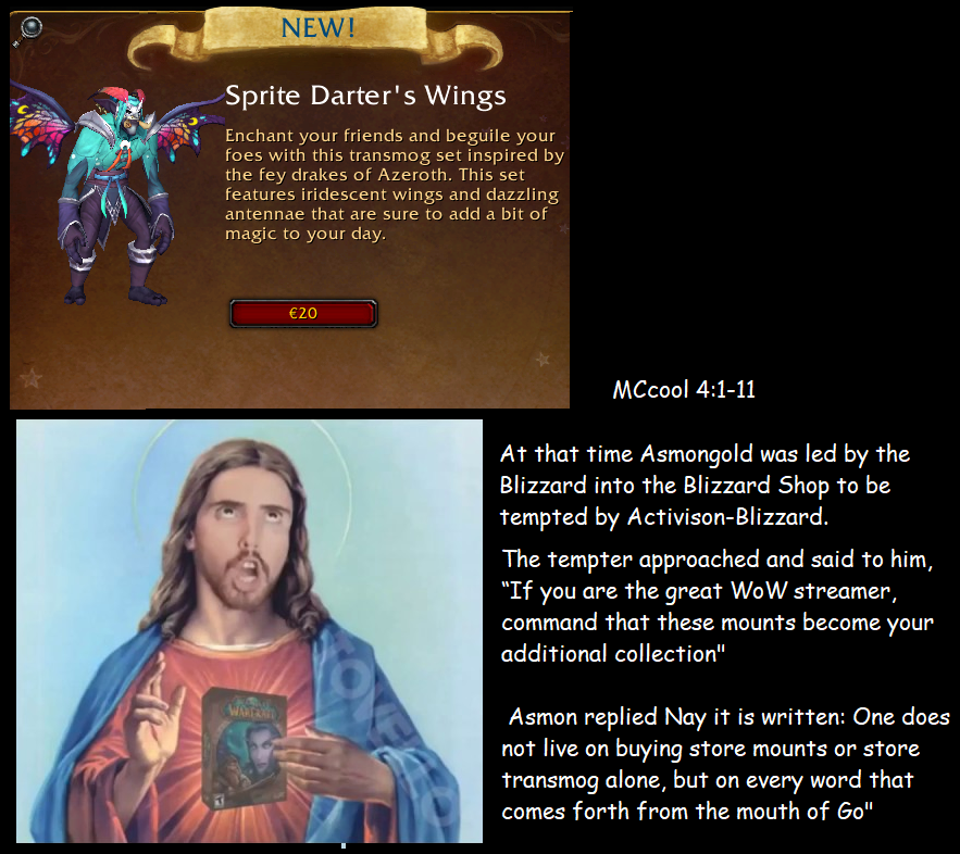 He's holding original wow, which didn't have tmog. Which also makes no sense as he frequently hates the low poly count armors and dismisses them from his mog competitions.