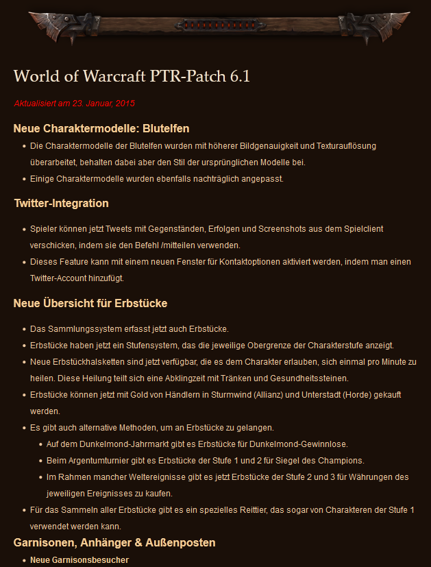 #wow “@Warcraft_DE: Die Patchnotizen zum PTR 6.1 sind live! http://ow.ly/I1R9s pic.twitter.com/D4N9PH3v6J”