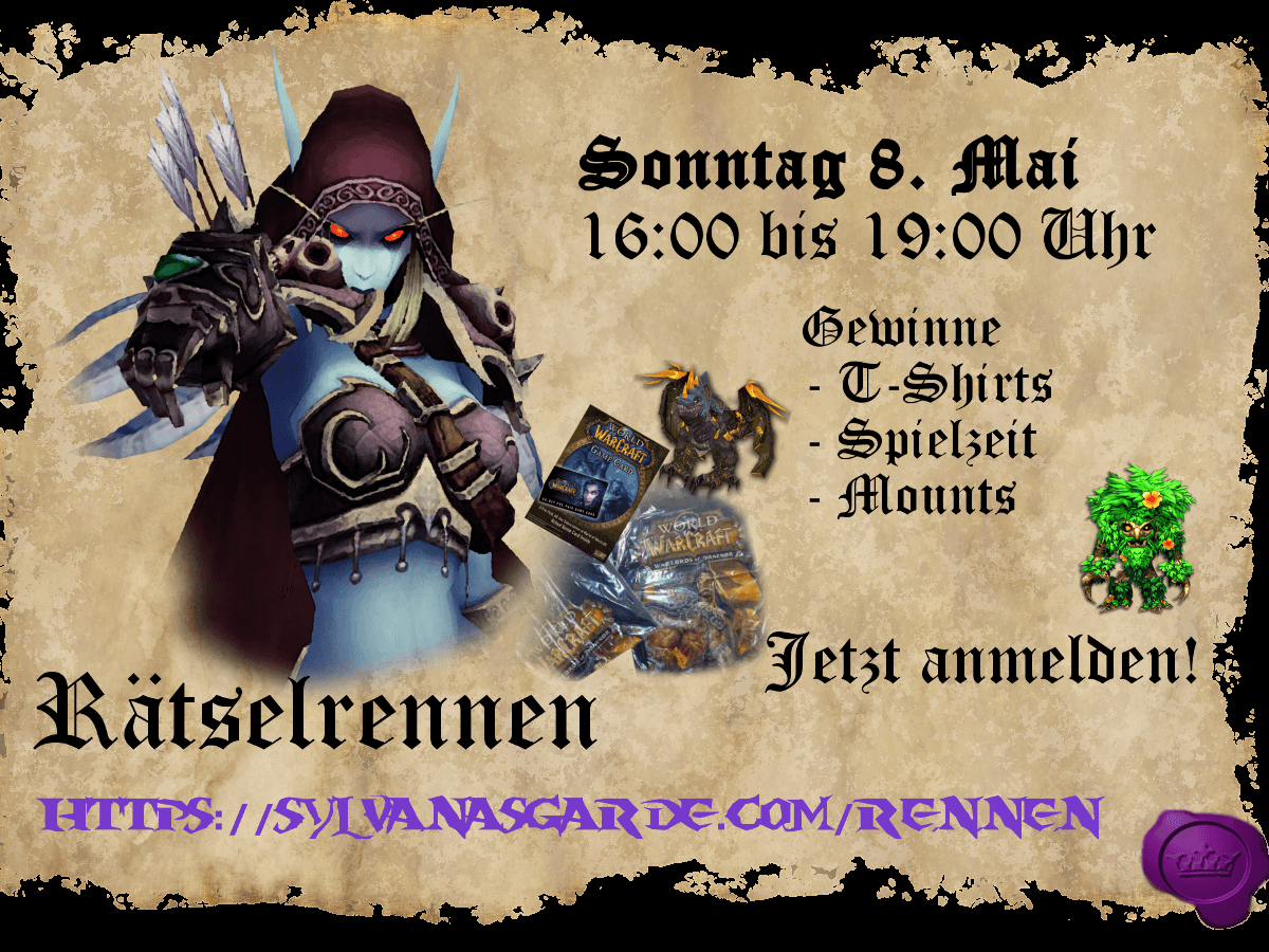 Am Sonntag (8.Mai) warten beim Rätselrennen der Gilde @SylvanasGarde tolle Preise auf euch! http://blizz.ly/1TIMgVq pic.twitter.com/csfkSWR6vn