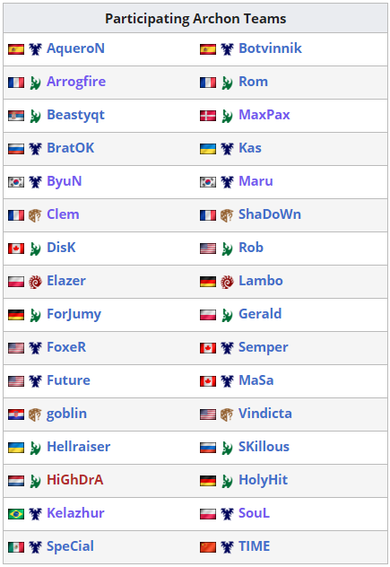 Here are our teams for the upcoming $1,700 Let's Get Our ArchON Tournament! Personal favourite : Team "Injury Terran" featuring ByuN and Maru :'D Full information and updates on http://TL.net / Liquipedia https://tl.net/forum/sc2-tournaments/566571-1700-warditv-lets-get-our-archon … https://liquipedia.net/starcraft2/WardiTVs_Let's_Get_our_ArchON …pic.twitter.com/9oJ4MSOJXu