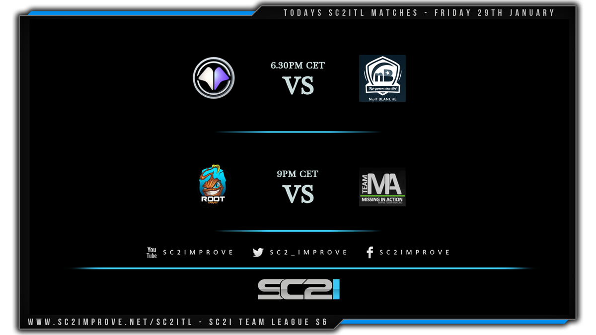 Todays #SC2ITL action starts at 6.30pm CET! Don't miss @Millenium vs @TeamNuitBlanche @ @ROOT4ROOT vs @Team__MiApic.twitter.com/qUlP2XY5KX