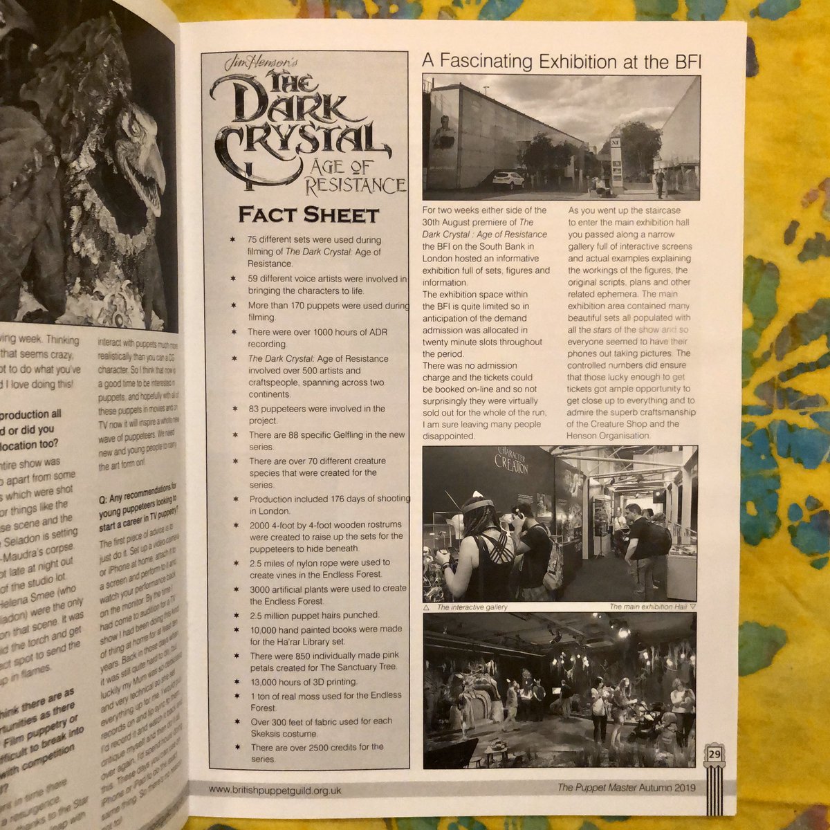 I was interviewed for ‘The Puppet Master’ magazine published by