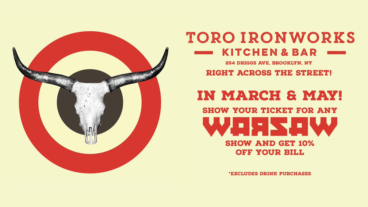 Celebrate at @t_Ironworksbk & get 10% off your order by showing a Warsaw ticket stub! Tacos on lock