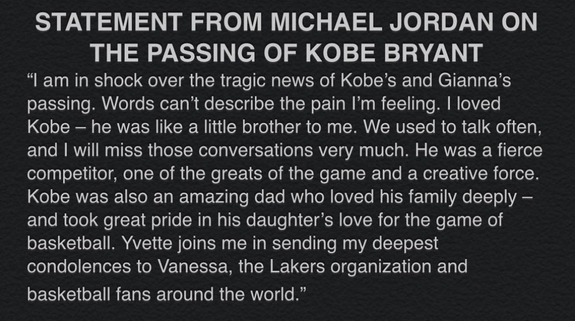 Life is so fragile. It can be taken from any one of us in a moment. Be kind to one another. To the Bryant family, heartfelt condolences on Kobe's passing. He was one in a million. RIP Kobe.pic.twitter.com/jZYH6V93xv