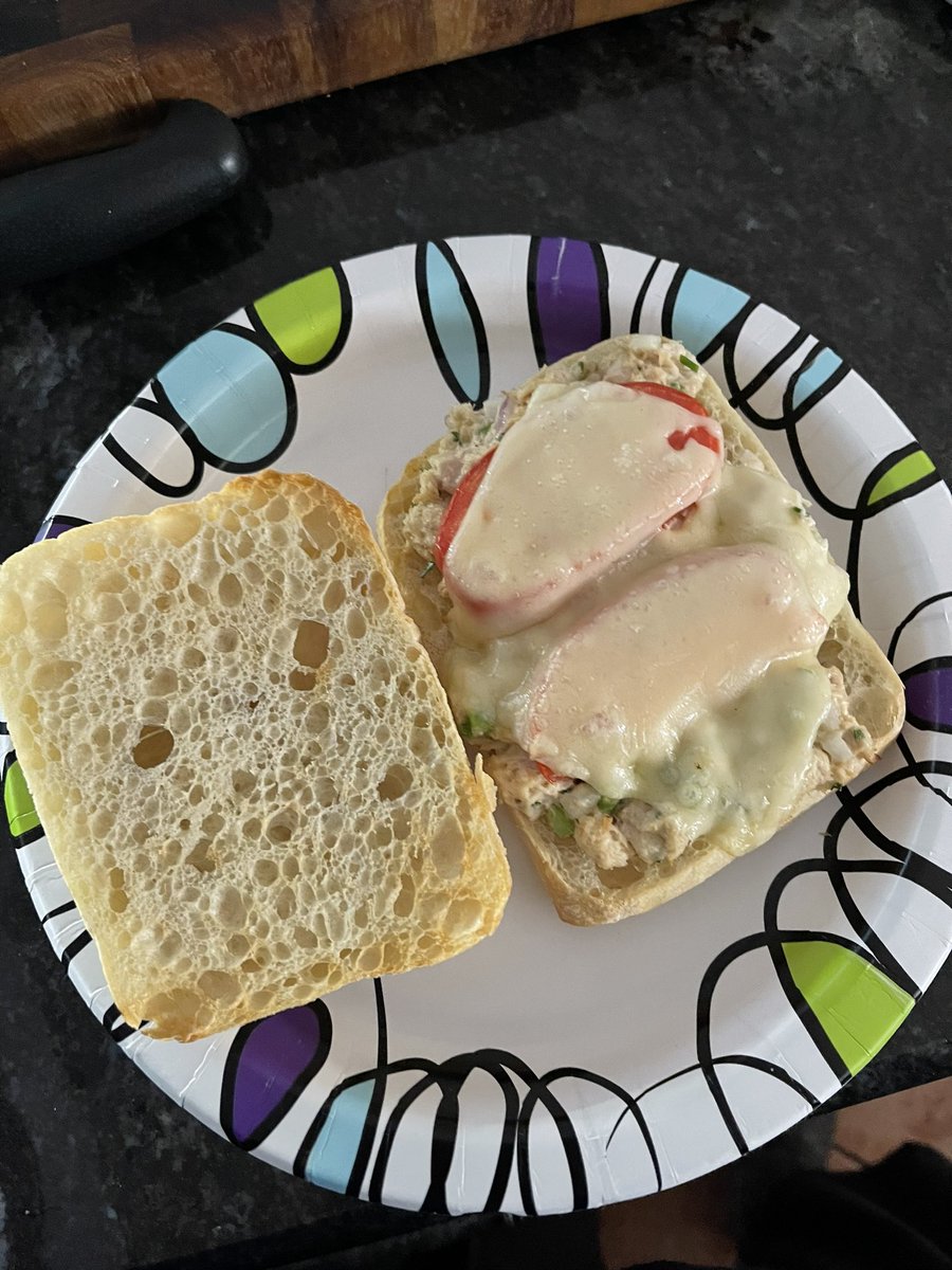 Simple dinner tonight. Tuna melt on Ciabatta bread via the Air Fryer! Three mins on 390 should do the trick. You can do four minutes for more toasty bread.