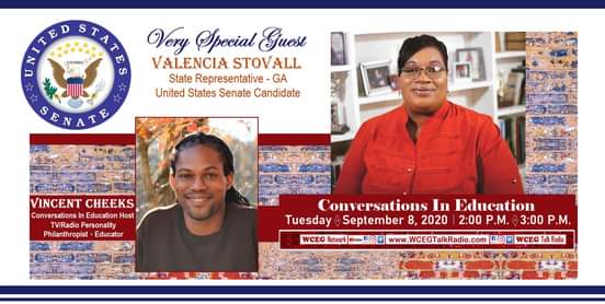 http://WCEGtalkradio.com host Vincent Cheeks & renaissance woman State Rep @ValenciaStovall -US Senate Candidate on Tue Sept 8, 2020 @ 2-3 PM.
