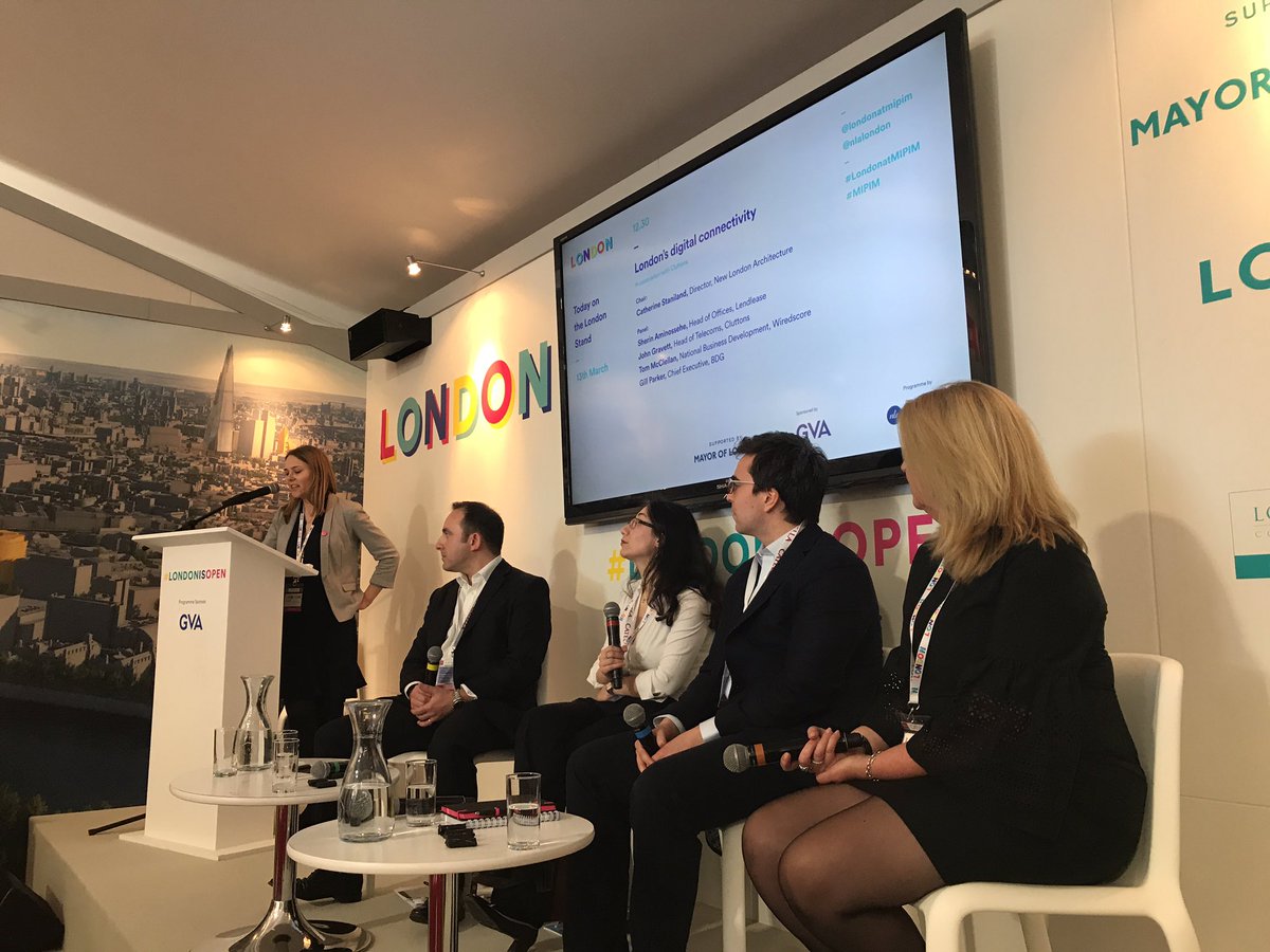 #SmartCity ?#LondonatMIPIM panel looking at London's digital connectivity w/@nlalondon@LendleaseGroup@Cluttons@WiredScore@WeAreBDGpic.twitter.com/LfGx69lIt9