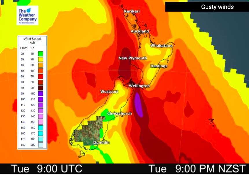 #Windy weather moves up#NewZealand today with gales in exposed coastal parts of northern NZ and severe gales through central NZ/Cook Strait area. Gale force winds in southern NZ ease this afternoon although tonight gusty southerlies move into coastal Southland and Otago.