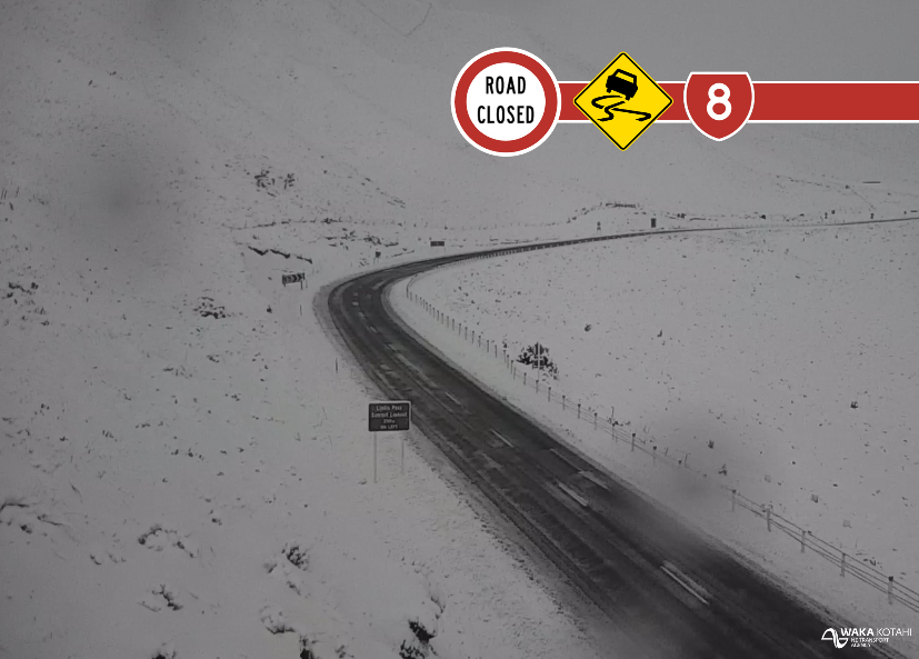 UPDATE 8AM, WED 7 JUL Due to snow settling on the road, the road remains CLOSED between Tarras and Omarama (SH8 Lindis Pass). Please continue to DELAY your journey if possible or consider using an alternate route. ^APpic.twitter.com/QNT1lEjPOr