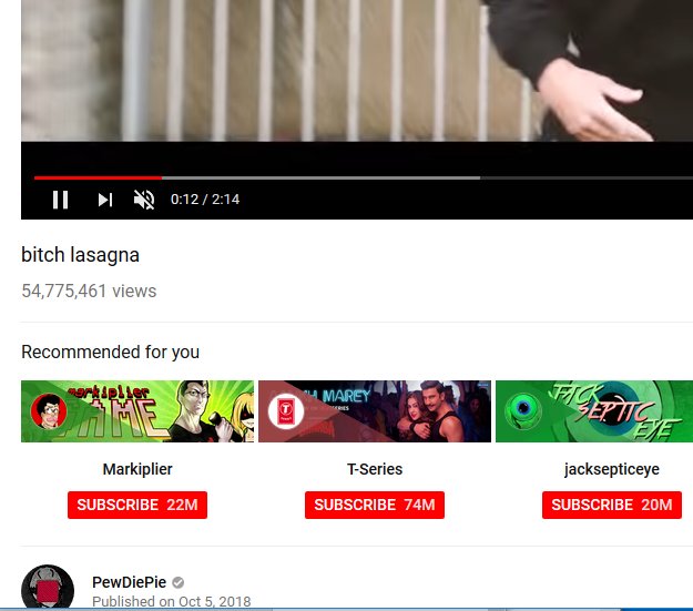 Noticed I wasn't subscribed to @pewdiepie yet, of course I had to fix this injustice immediately. Why would @TeamYouTube reccomend T-Series though????!!