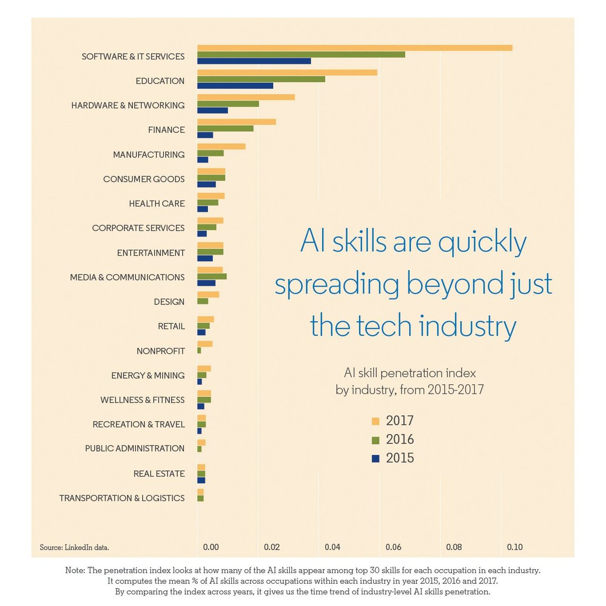 The United States, China, India, Israel, and Germany rank as the countries with the highest penetration of AI skills among their workforce.