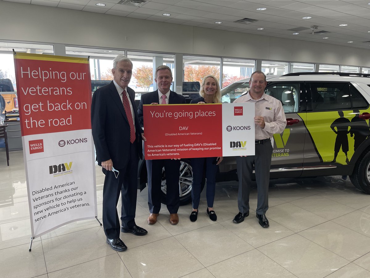@WellsFargo and@koonsauto for graciously donating a brand new vehicle to DAV's Transportation Network. To learn more about the DAV Transportation Network or to volunteer as a driver, visit http://dav.la/n .#dav#veterans#wellsfargo#koonsauto#KeepThePromisepic.twitter.com/MFhkS5D7dH