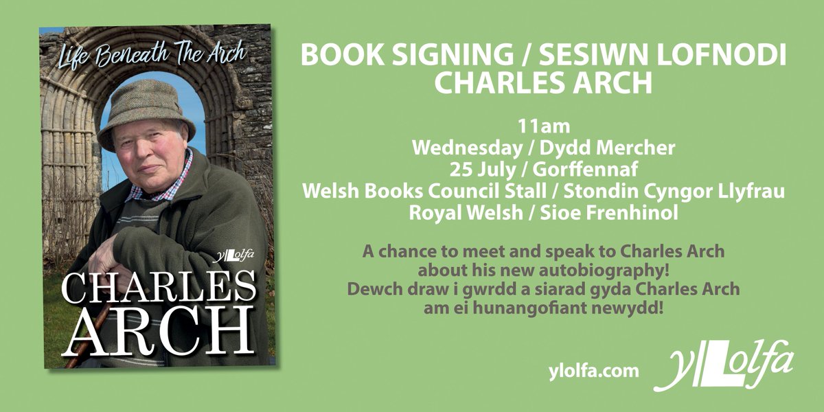 Bydd Charles Arch yn Stondin Cyngor Llyfrau, y Sioe Frenhinol ar ddydd Mercher 25 Gorffennaf am 11yb - dewch draw! Charles Arch will be at the Welsh Books Council stall,