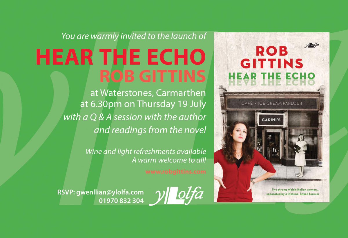 Book Launch | Hear the Echo by Rob Gittins 6:30pm Thursday 19th July Waterstones, Carmarthen, with a Q and A session with the author and readings from the novel. Wine and light refreshments available. A warm welcome to all!