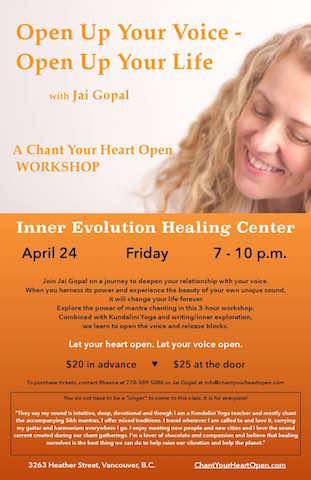 Chant Your Heart Open at Unity Yoga on April 4. Mantras . Massage . Mega-healing 7-8:30 pm