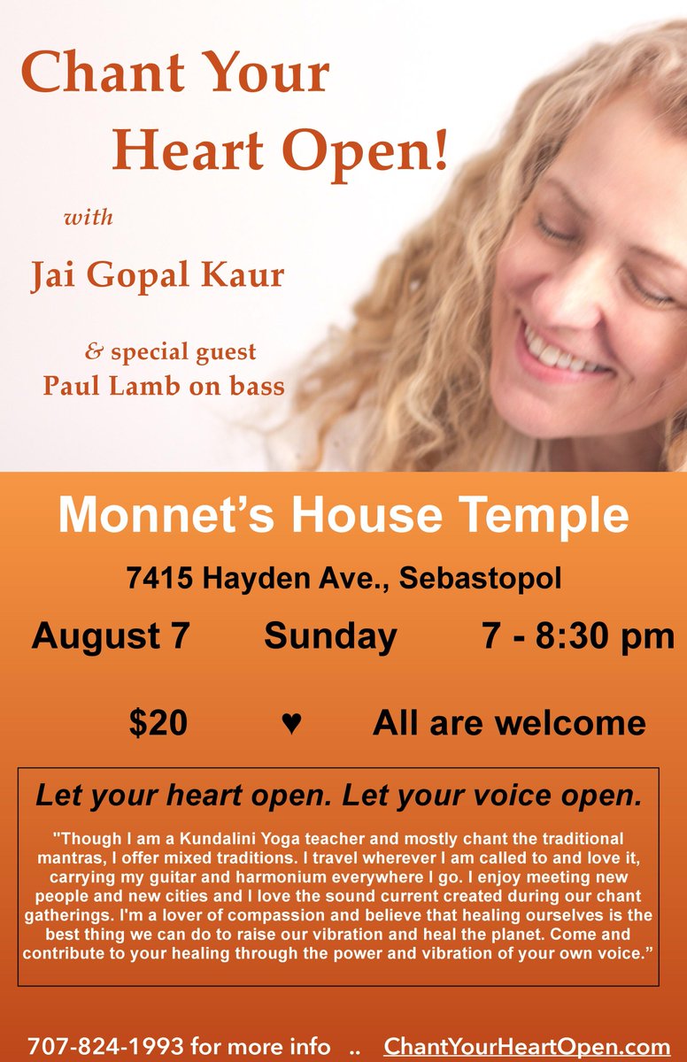 Upcoming http://ChantYourHeartOpen.com events! Dive deep into the divine with Chant Your Heart Open.
