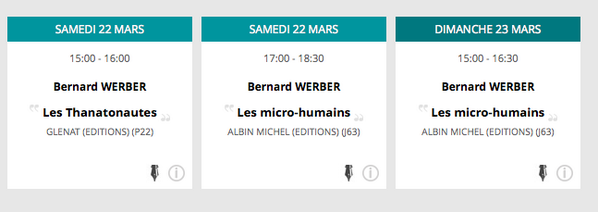 Samedi 22 Dédicace @Salondulivre Paris 15h stand GLENAT et 16h stand Albin Michel. Puis 16h Dimanche 23 Albin Michel.pic.twitter.com/jQZHl76ohS
