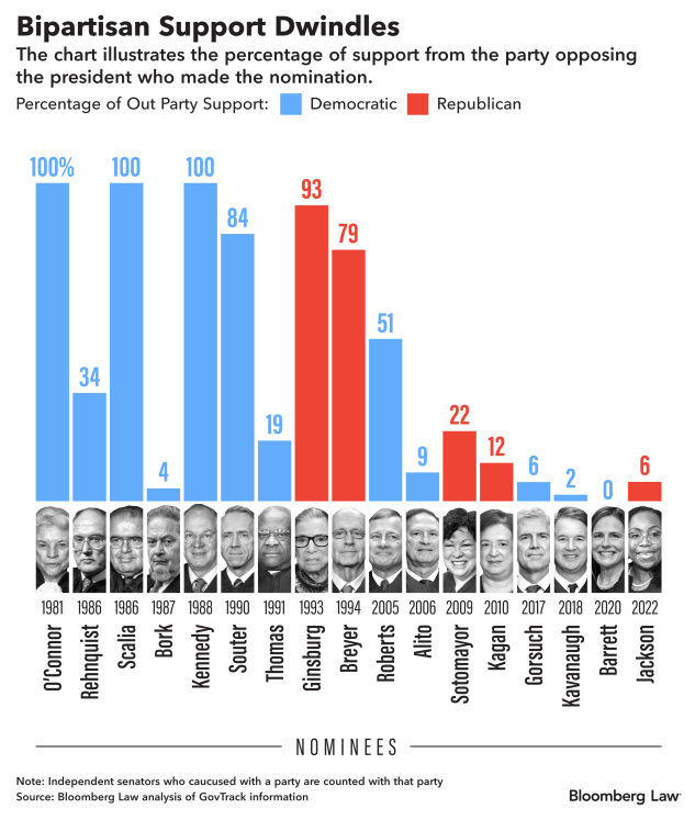 Nearly thirty years - more than a generation - since a Supreme Court nominee received overwhelming bipartisan support; the middle has hollowed out as both Republicans and Democrats move further from the center. Bodes poorly for the cooperation that is needed for problem solvingpic.twitter.com/PGAgC5kwEL
