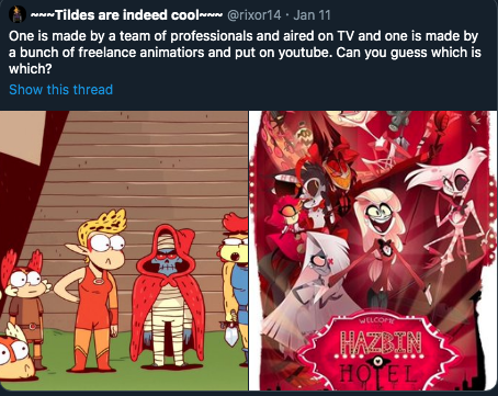 I didn't even say it was "good" I just said I didn't like it or dislike it, but no, if you don't hate it with all your heart then there's something wrong with you apparently And then you're assaulted with all these people making assumptions about how the animation industry--pic.twitter.com/brm5cUKgDG