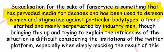 this is bullshit and shows a fundamental misunderstanding of the medium a significant amount of anime/manga/doujin is made by woman are you suggesting they all have "internalized misogyny" if so i find that to be REAL sexsim maybe they just draw that way cuz day want topic.twitter.com/MwaCt4DaVW