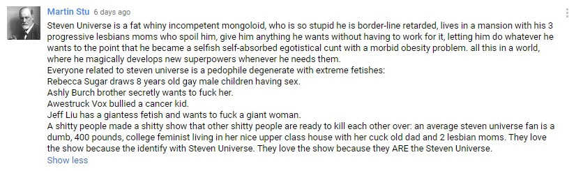 -- obnoxious than people expressing their love for something. The show has resonated with so many people on so many different occasions, just because some jabroni doesn't feel the same way doesn't mean they should shit all over them