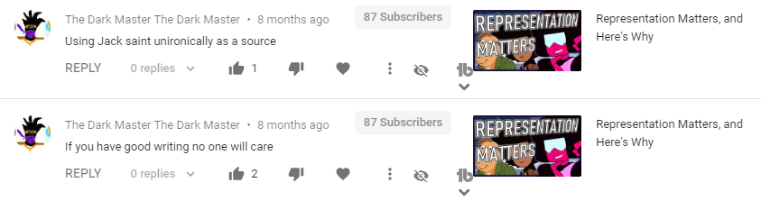 I KNOW THIS DUDE HE MADE A COMMENTARY ON A VIDEO I MADE I corrected someone spreading "calarts style" misinformation, and made up stuff that has no relation to what I said He comments on my videos quite a bit too https://youtu.be/5PtntTgD2I0?t=335 …pic.twitter.com/QoYQyyXAPZ