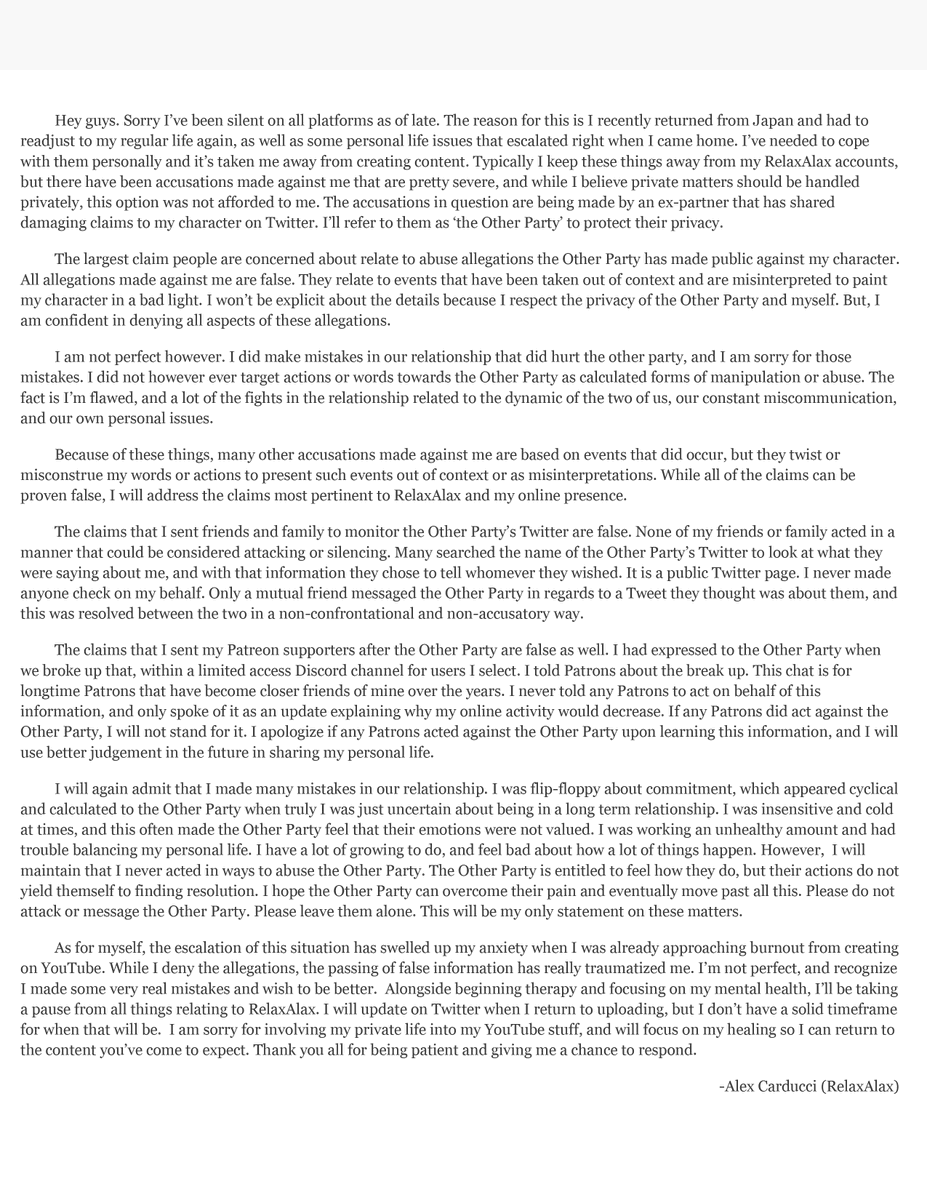 Then Alax made his statement. And man, I wanted to believe him. But it felt off in a way. Such a big wall of text and yet not much is really said. But I didn't really know anything, so I couldn't say anything. I was soft and indecisive back then, so I just believed both.pic.twitter.com/JmYg3Q2tiU