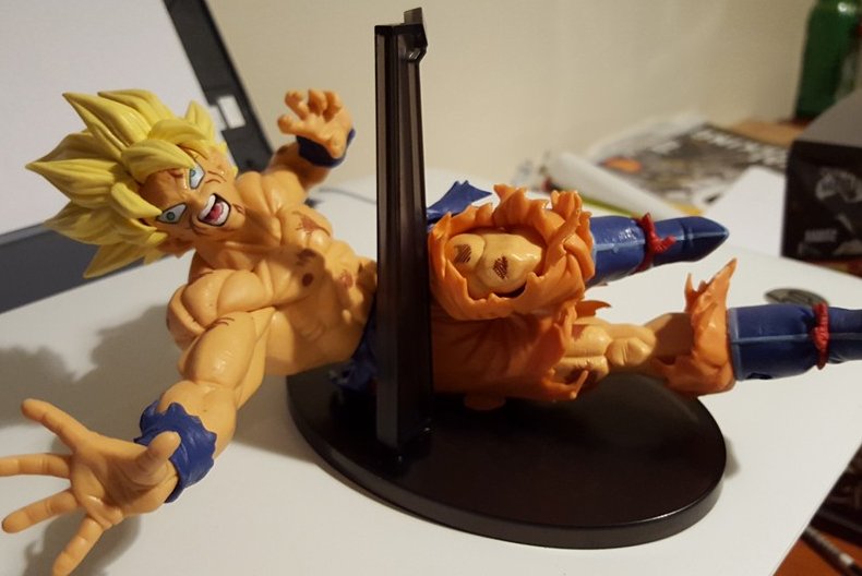 LMFAO A FRIEND OF MINE BOUGHT THIS AT A CONVENTION RESULT: DERP-EYED SSJ GOKKER HE WON'T EVEN FIT ON HIS STAND LOLpic.twitter.com/JsZHOLSDum