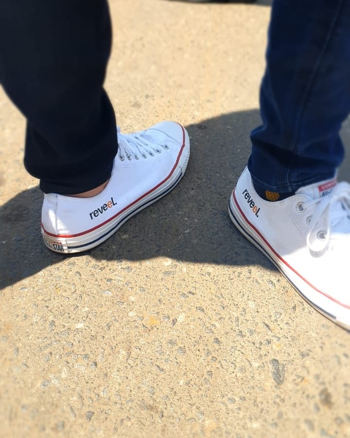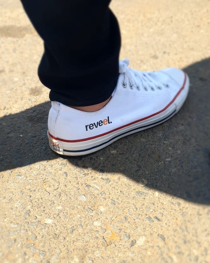 Rocking some Reveel kicks... Launching Reveel's Digital Screens. It's a Reveel day y'all!!