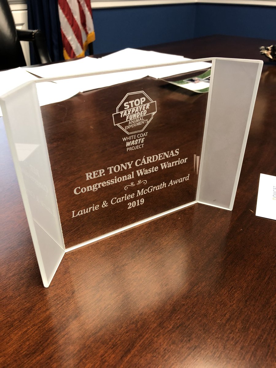 @WhiteCoatWaste for giving me the 2019 Waste Warrior award for my work on ending animal cruelty and inhumane animal testing. This issue is near and dear to my heart and I will continue fighting for animal rights in this new legislative year.pic.twitter.com/jorHldaSNg