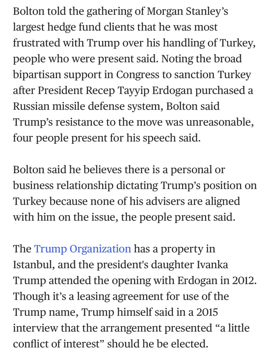 Speaking of Turkey, could you explain why POTUS’ former National Security Adviser John Bolton said he thinks “there is a personal or business relationship dictating Trump’s position on Turkey”? https://www.nbcnews.com/news/amp/ncna1080651?__twitter_impression=true …pic.twitter.com/dX3QutAIdg
