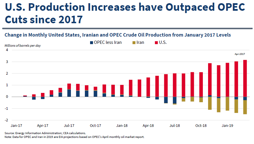 @potus announcement on#Iran oil sanctions, consider that US production is up since inauguration by just north of 3 million barrels a day, while OPEC and Iran are down by about half that.pic.twitter.com/ALzLjYQnKW