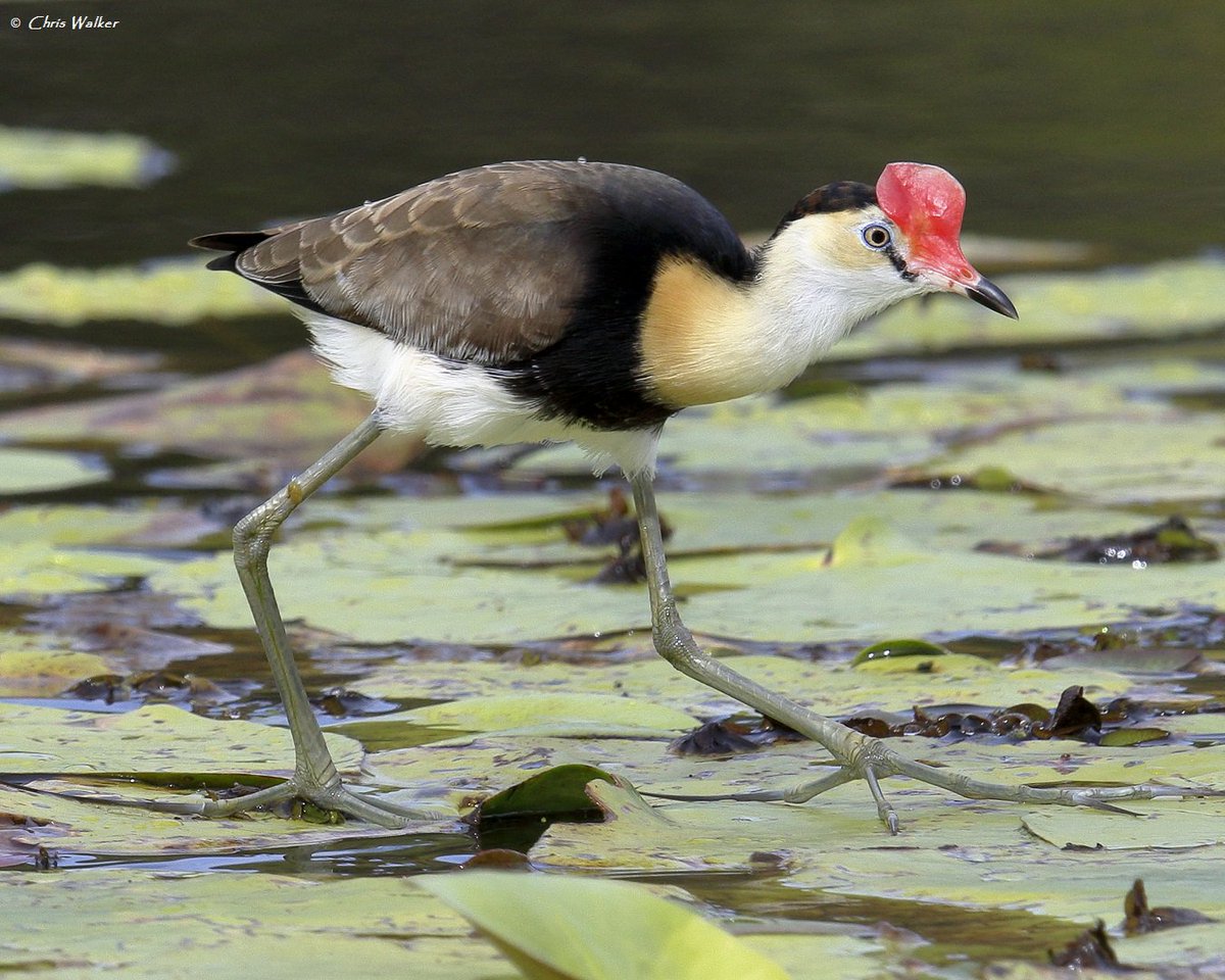 Comb-crested jacana stepping across the water lilies at Crystal Waters in Thornlands.