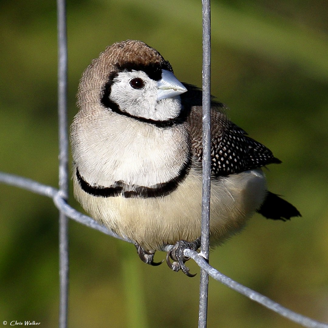 Double-barred finch in wetlands at Wellington Point. The fencing is to protect an area which is being revegetated by Redland City Council.