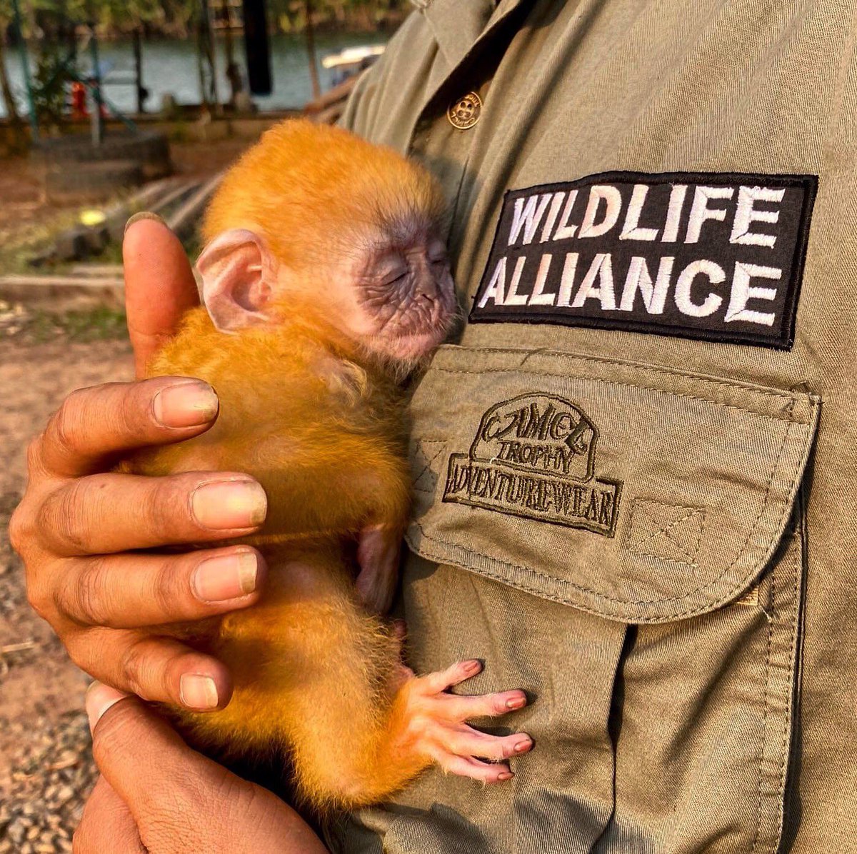 #rangers at Sre Ambel who rescued this baby silver langur last week. Despite being born with bright orange fur, over the course of 3-5 months silver langurs develop the full adult fur pattern. The langur is now under the care of our team at@PhnomTamao.pic.twitter.com/uZpZv5AWSe