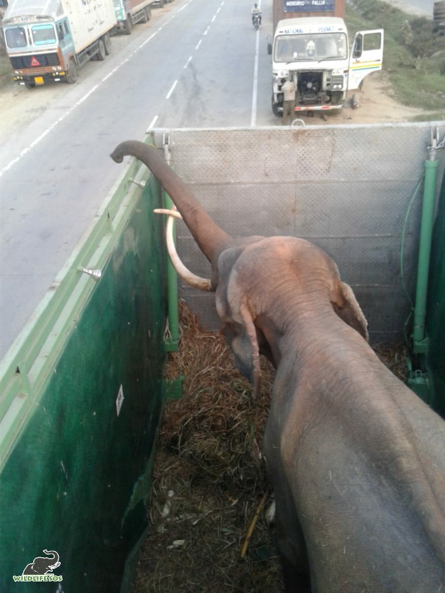 Ready to begin the journey! Finally comfortable with the #ElephantAmbulance, #Ramu had lots of nutritious food and was given medication to soothe & treat the pain in his sore legs before the long trip. Specialized vets are there to tend to his every need. We will keep you posted.pic.twitter.com/BAsiteLwoK