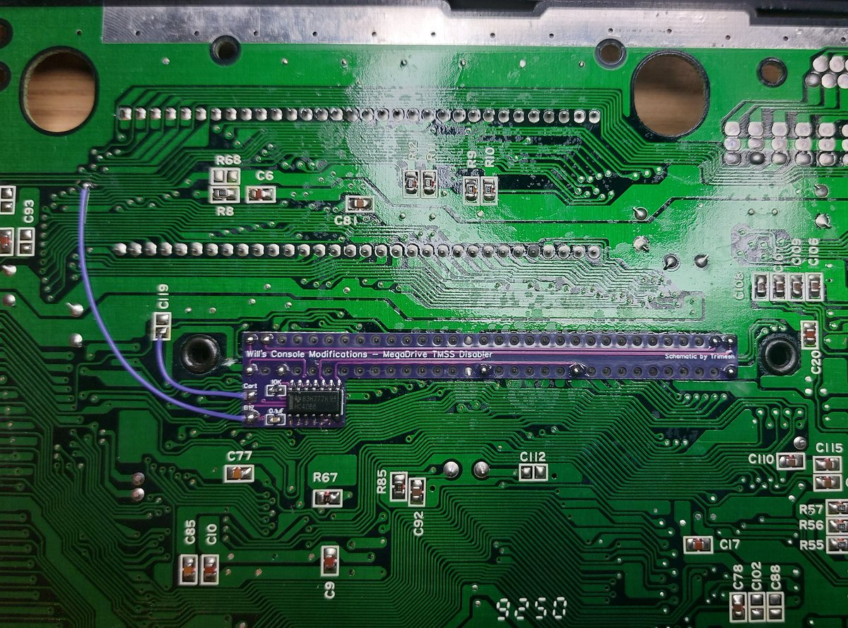 New Mod Alert! Sega MegaDrive TMSS Remover! The TMSS is a security system built into most megadrive consoles to prevent booting of non-licensed carts! Also, when the TMSS fails, it also prevents real cart booting! With this simple QSB, 2 trace cuts and 2 wires.pic.twitter.com/lpwK8R3qGO
