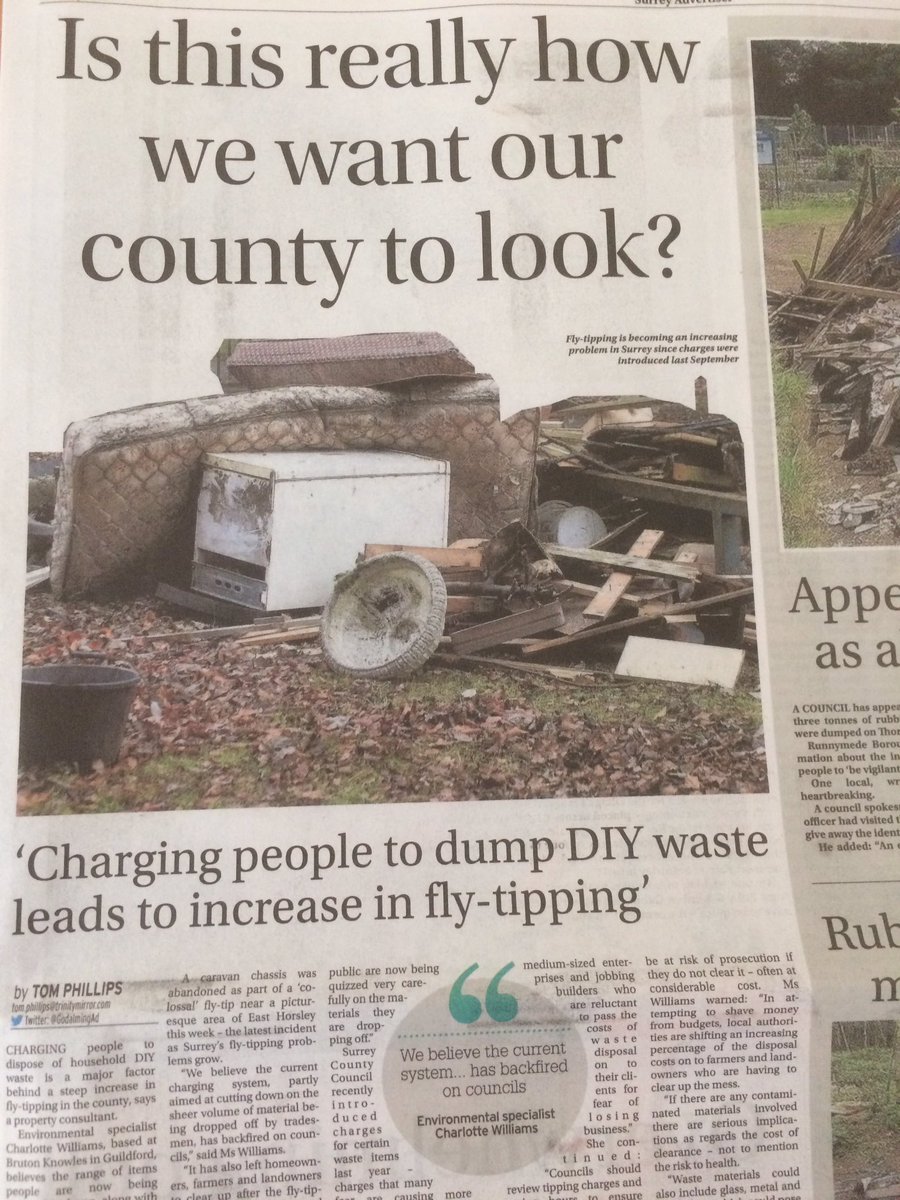 Lots of coverage on @getsurrey and in the #Woking Ad about the counter productive Tory Tip Tax that just causes more fly tipping in #Surreypic.twitter.com/UcuK2js2hT